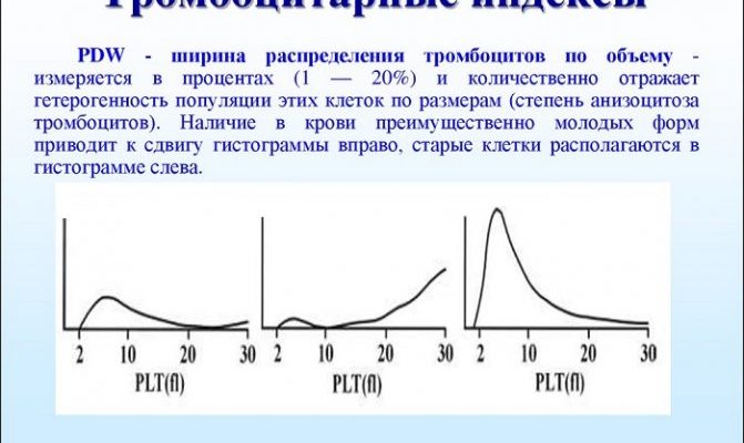 - Распределение тромбоцитов по объему и ширине.