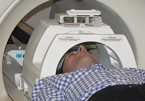 Сканирование проводится с помощью сканера МРТ. Устройство выглядит как массивная труба с выдвижным столом в центре. На нее кладут пациента и заводят в туннель.