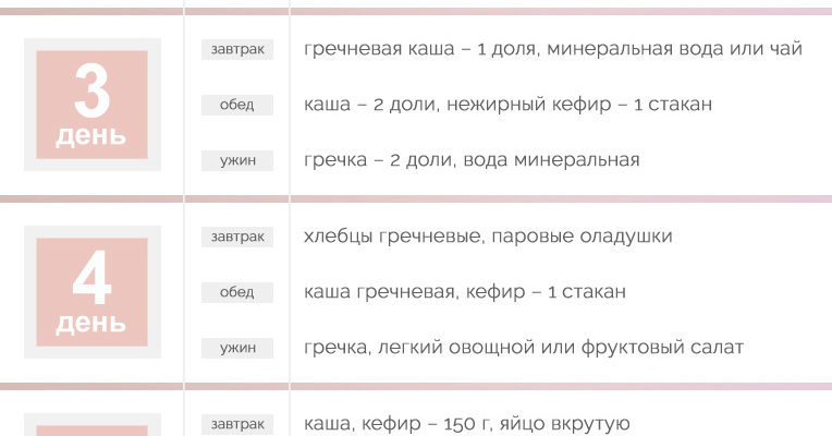 Гречневая диета. Меню