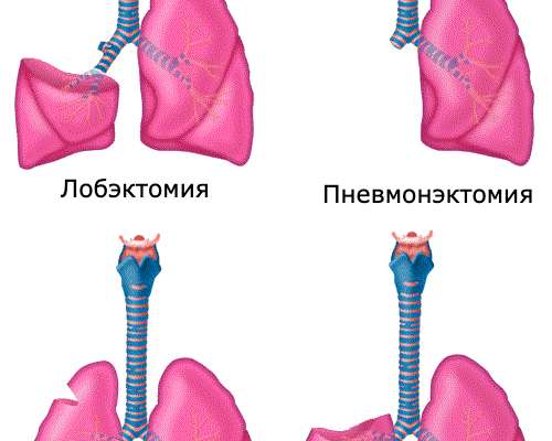- Пневмонэктомия — ампутация всего органа;