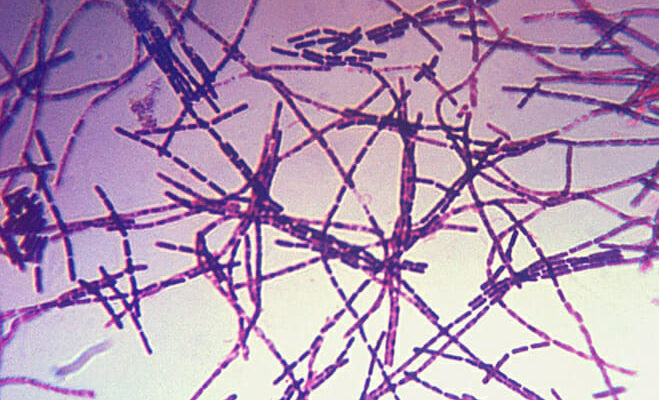 Leptotrix — переходная форма между бактериями и грибами. Просмотрено под микроскопом, появляется внешний вид волокна, переплетенных по всей длине небольших точек.