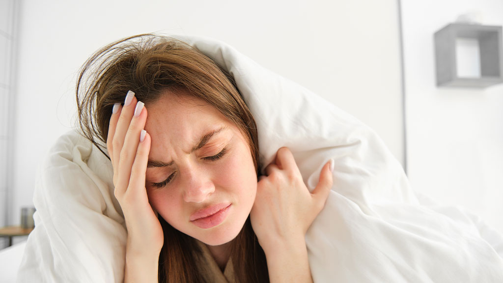 Если боль распространяется по всей голове и ощущается как сдавливающая «обручем», вероятнее всего это головная боль напряжения, провокаторами которой может быть стресс, усталость, тревога или длительное напряжение мышц.