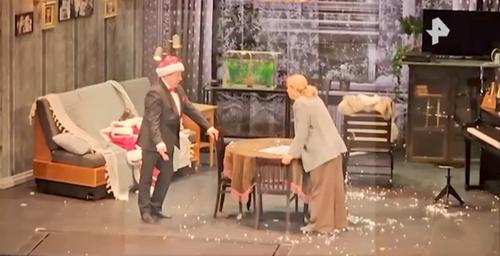 На кадрах одна из сцен спектакля с участием Михаила Ефремова и Анны Михалковой.