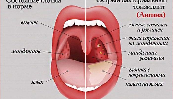 - больное горло;