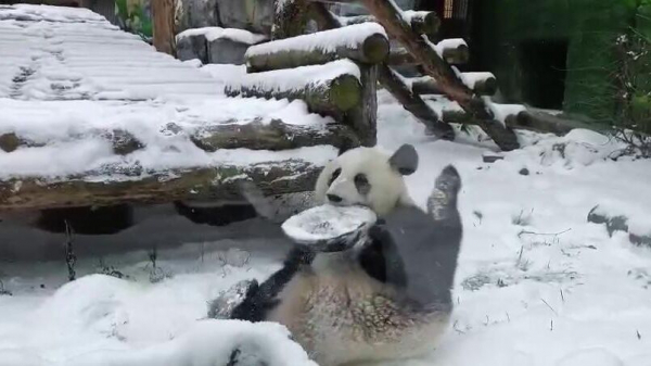 Генеральный директор Московского зоопарка Светлана Акулова в своем Telegram-канале показала, как панда Катюша радуется выпавшему в столице снегу.