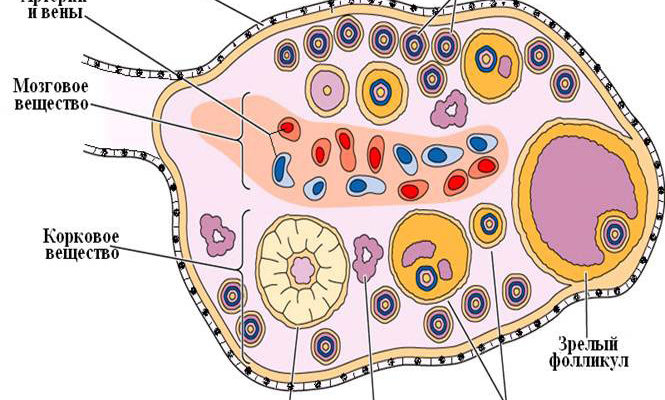 Это вызывает небольшой отек яичника и умеренное кровотечение. Кровь выделяется в полость таза и частично в маточную трубу, откуда она попадает в полость матки. Кроме того, в полости таза в пространстве за маткой (пространство Дугласа) образуется асептическая жидкость, которая является результатом легкой воспалительной реакции на отток крови. Все это сопровождается раздражением болевых рецепторов.