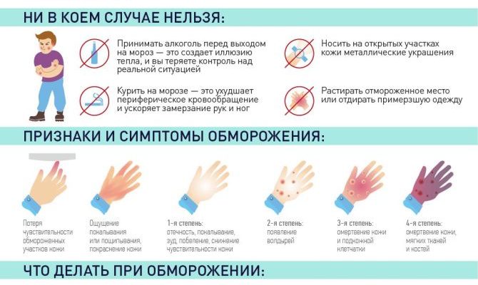 — при ощущении обморожения или обморожения конечностей при ходьбе следует как можно скорее отправиться в теплое место — в магазин, кафе, подъезд — для разогрева и проверки мест, потенциально подверженных обморожению;