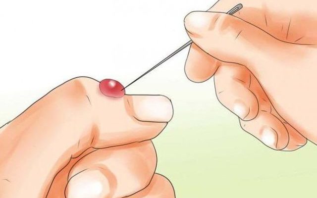 Также необходимо продезинфицировать иглу, которой мы собираемся проткнуть (она должна быть как можно более тонкой).