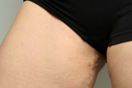 - синеватые узлы и выступающие над поверхностью кожи вены;